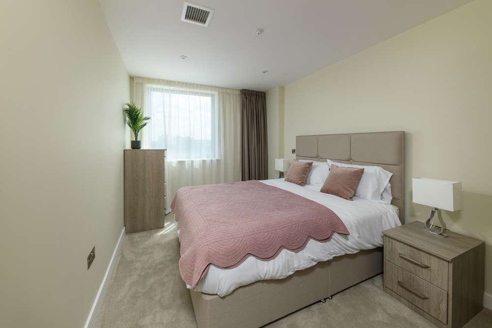 Both bedrooms include luxury king-size beds and spacious fitted wardrobes with additional chests of drawers. There is also a fully tiled luxury shower room with walk-in shower, vanity storage unit with basin, WC, LED mirror and heated towel radiator.